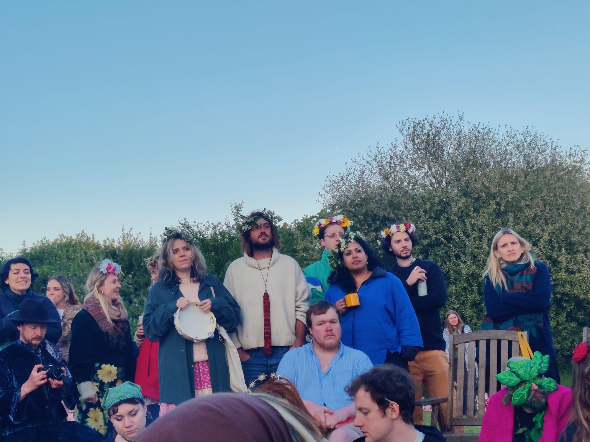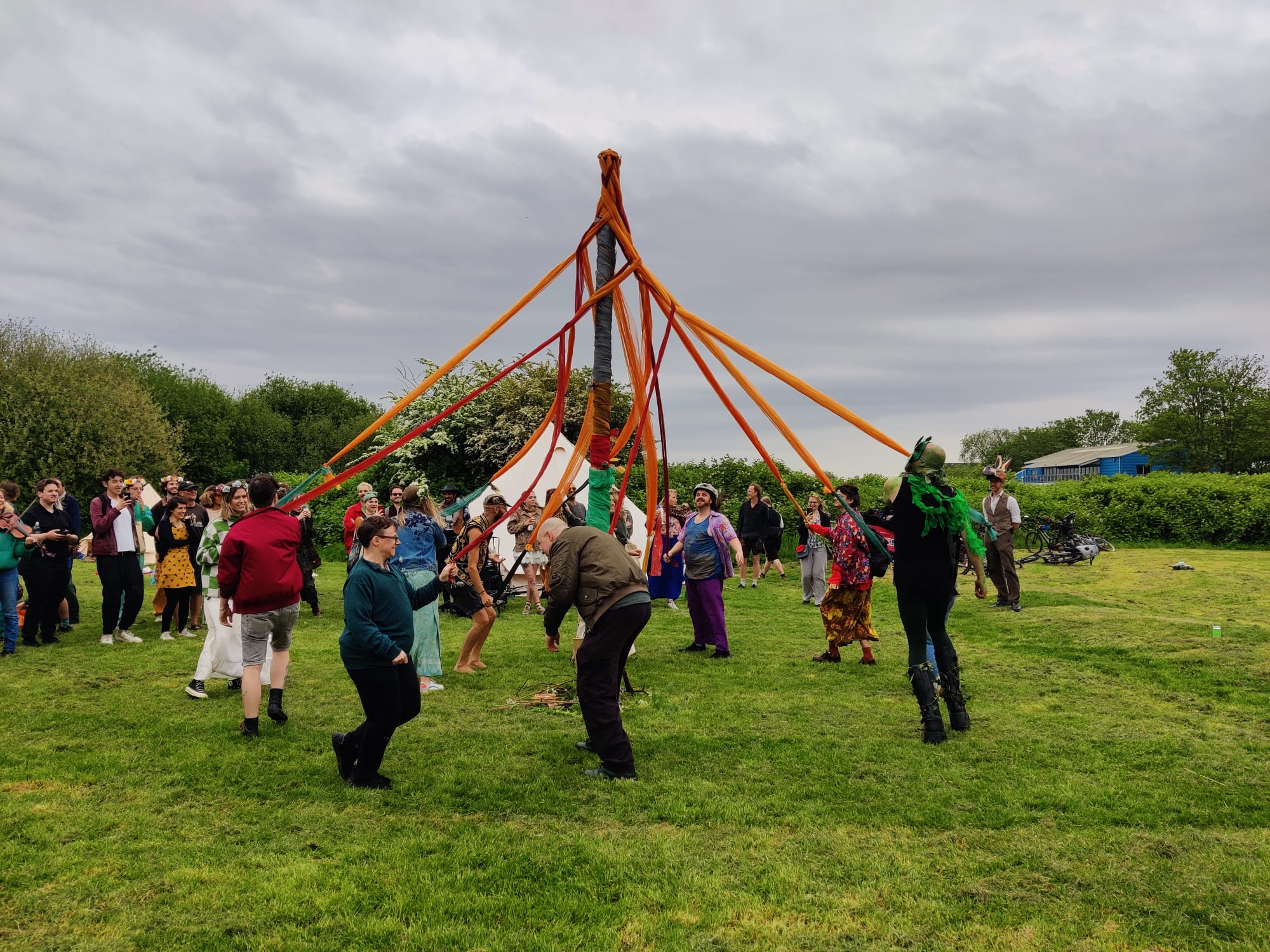 We had our first fire to mark Winter Solstice 2023. It was a small event with maybe 15 attendees, best described as a bin-fire in a car park with ideas above its station. Since then we have grown as an event and a team. We have had a maypole, feasts, craft sessions, bands, fire spinners and a puppet show. We are excited to see where this adventure will take us.